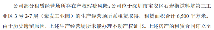 除了财务与关联交易问题,拓普泰克还面临硬性的合规瑕疵。公司位于深圳宝安区的主要生产经营场所约6500平方米系租赁取得,且因历史遗留问题无法办理不动产权证书。该场所面临无法续租乃至被责令拆除的风险。